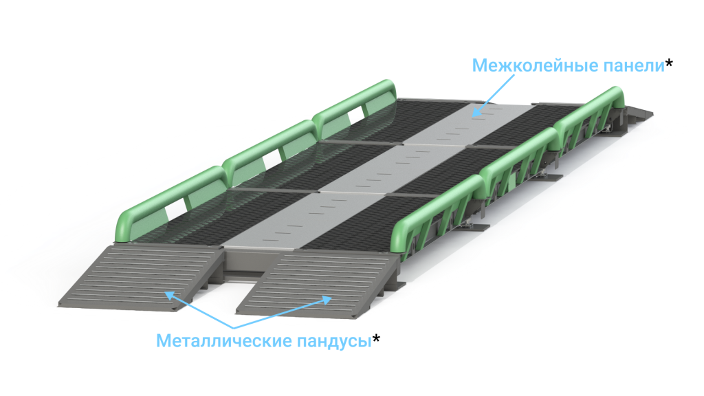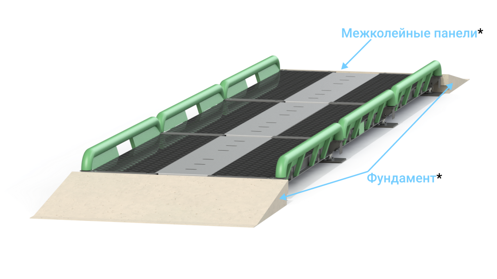 - Установка на фундамент в приямке (врезное исполнение). Платформа монтируется в уровень с проезжей частью.