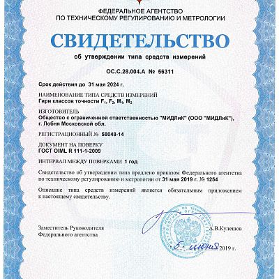 Гиря торговая 1кг, М2 OIML R 111-1 в футляре