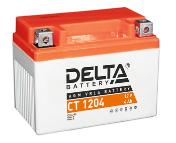 Герметизированный необслуживаемый VRLA cвинцово-кислотный стартовый аккумулятор Delta CT 1204 напряжением 12В и емкостью 4Ач. Обладает стартовым током в 50А. Полярность - обратная (- +). Аккумулятор соответствует следующему коду YUASA: YB4L-B, YB4L-A, YTX4L-BS. Разработан специально для пуска двигателей мототехники. Изготовлен по технологии AGM (с микропористым заполнителем, пропитанным электролитом) из негорючего ABS пластика. Срок службы аккумулятора достигает 3-5 лет. Высокая стартовая мощность и повышенная энергоотдача. Адаптирован к Российским условиям эксплуатации.