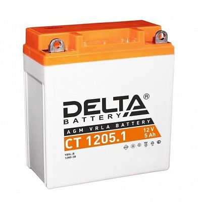 Герметизированный необслуживаемый VRLA cвинцово-кислотный стартовый аккумулятор Delta CT 1205.1 напряжением 12В и емкостью 5Ач. Обладает стартовым током в 65А. Полярность - обратная (- +). Аккумулятор соответствует следующему коду YUASA: 12N5-3B, YB5L-B. Разработан специально для пуска двигателей мототехники. Изготовлен по технологии AGM (с микропористым заполнителем, пропитанным электролитом) из негорючего ABS пластика. Срок службы аккумулятора достигает 3-5 лет. Высокая стартовая мощность и повышенная энергоотдача. Адаптирован к Российским условиям эксплуатации.
