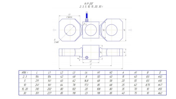 Тензодатчики на растяжение К-Р-20Г НПИ от 2 до 30 тонн