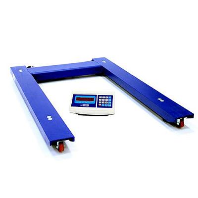 П-образные 4-датчиковые электронные паллетные весы, MAX=1000кг, MIN=4кг, e=d=200/ 500г, светодиодный весоизмерительный прибор МИ ВДА/04, П-образная рама изготовлена из конструкционной стали. Функции: количество цифровых разрядов: Вес-6. Интерфейс RS232. Автоноль, принудительное обнуление, тарирование, суммирование взвешиваний, режим дозирования, режим процентного взвешивания, счетный режим, звуковая сигнализация. Питание: аккумулятор 4в/ 4Ач, сеть 220в , темп: -10+40 град С