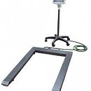 Паллетные весы представляют из себя две отдельные грузоприёмные платформы, соединённые между собой жёсткой перемычкой. Применяются для взвешивания поддонов с грузом, перемещаемых гидравлическими роклами или погрузчиками. Расстояние между платформами рассчитано таким образом, чтобы внутрь весов могла заехать рокла и опустить поддон с грузом для взвешивания.