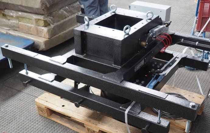 Для использования транспортера применяется дополнительная установочная рама с механизмом подъема мешка для наполнения и последующей установкой мешка на конвейер.