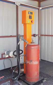 Электронная весовая установка для наполнения бытовых баллонов сжиженным углеводородным газом (пропан-бутан) ВП-60 укомплектована промышленным контроллером, грузоприемным устройством и электромагнитным клапаном управления подачей газа.