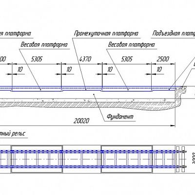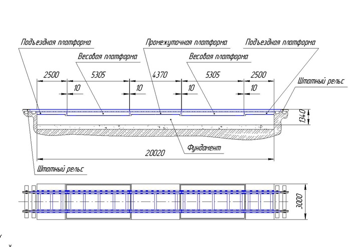 Базовая комплектация весов без рельс с подкладками под рельс на взвешивающих платформах с элементами крепления рельс
