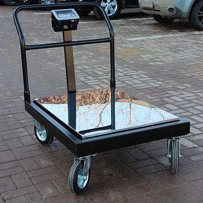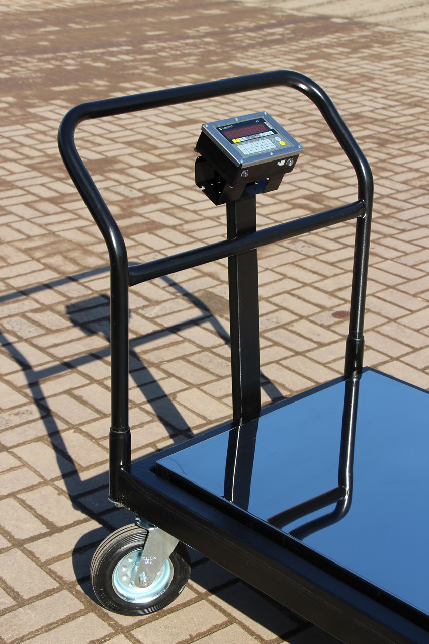 Тележка с весами, позволяет легко организовать мобильные точки учета на складах. Весы встроены в тележку, поэтому трудностей в эксплуатации не возникает. Специальная конструкция и усиленная платформа позволяет не только взвешивать, но и перемещать грузы массой от 400 г до 600 кг в зависимости от модели. Трехдиапазонный режим взвешивания и кварцевый датчик обеспечивают повышенную точность взвешивания для грузов различной массы. По умолчанию тележка с весами оснащена интерфейсом для связи с компьютером RS-232, по заказу возможно оснащение интерфейсами USB, Ethenet или Wi-Fi.