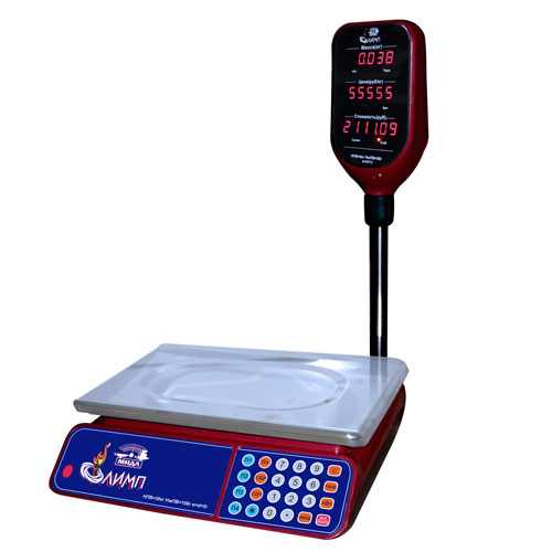 Электронные торговые весы, Max=6кг; Min=20г; e=1/2г; платформа 355х235мм нерж., индикация: продавца и покупателя: - светодиодная, рассчет сдачи, питание: сеть, аккумулятор.