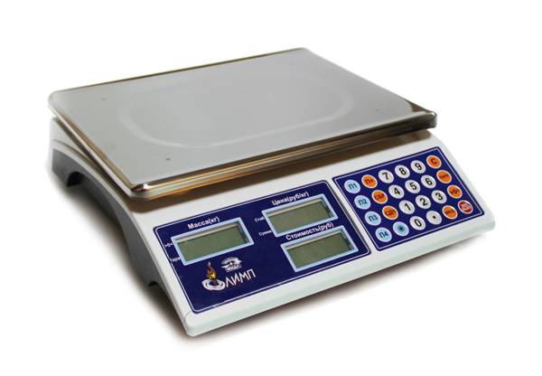Электронные торговые весы без стойки, Max=3/6кг, Min=20г, e=1/2г, платформа 230х300, дисплей ЖКИ ("ЦЕНА" - 6 разрядов, "СТОИМОСТЬ" - 7 разрядов), режимы: тара, суммирование стоимости, подсчет сдачи, 4 ячейки памяти, универсальное питание: сетевой адаптер 220В/6В/600мА, аккумулятор 4В/4Ач, батарейки R20 1,5Вх3шт, рабочий темп.режим: 0-+40 градС, вес-2,8кг