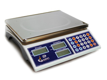 Электронные торговые весы без стойки, Max=3/6кг, Min=20г, e=1/2г, платформа 230х300, дисплей ЖКИ ("ЦЕНА" - 6 разрядов, "СТОИМОСТЬ" - 7 разрядов), режимы: тара, суммирование стоимости, подсчет сдачи, 4 ячейки памяти, питание: сетевой адаптер 220В/6В/600мА, батарейки R20 1,5Вх3шт, рабочий темп.режим: 0-+40 градС, вес-2,8кг