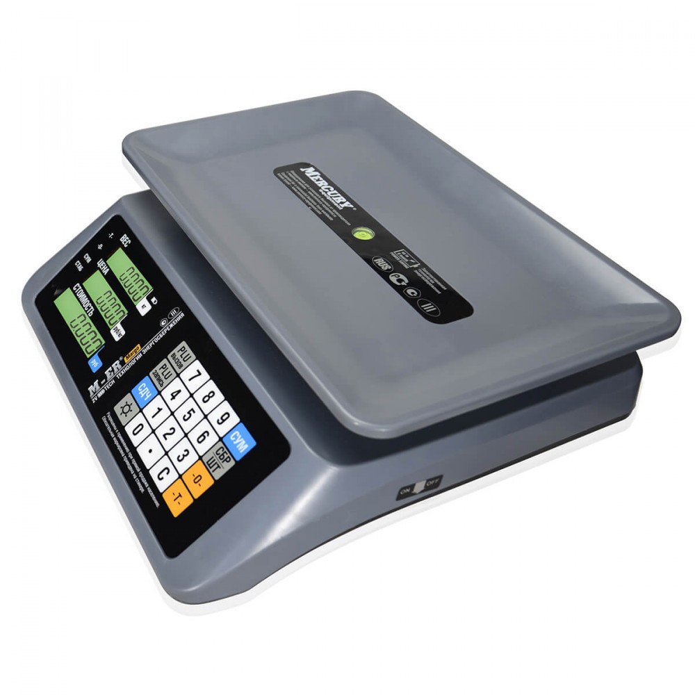 Настольные весы не занимают много пространства на столе. Размеры корпуса 330*330*115 мм. Размер платформы 330*230 мм. Платформа широкая, сделана в виде подноса. Есть бортики для удобного взвешивания сыпучих продуктов. Индикатор и клавиатура находятся под защитной панелью.