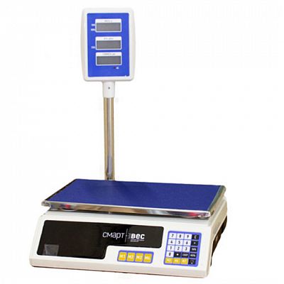 Весы торговые Смартвес ВП-15 с стойкой, с поверкой. Недорогие торговые весы. Предназначены для взвешивания и определения стоимости товаров на предприятиях торговли.