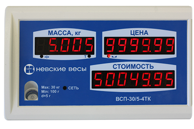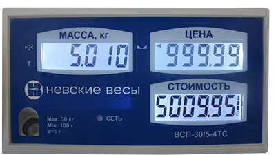 Торговые весы ВСП-4ТС предназначены для взвешивания товара и определения его стоимости при заданной цене за килограмм.