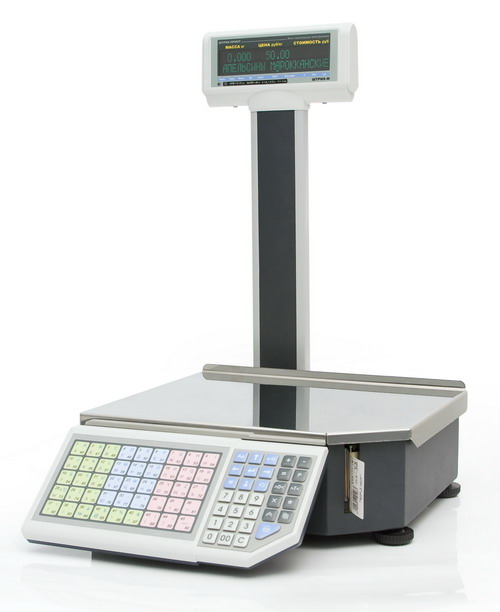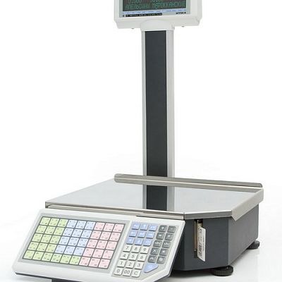 Удобные весы с печатью этикетки, которые одинаково успешно могут использоваться как для фасовки товара, так и для работы в торговом зале. Клавиатура весов размещена внизу, двусторонний вакуумно-флуоресцентный дисплей покупателя хорошо виден над холодильными витринами-прилавками.