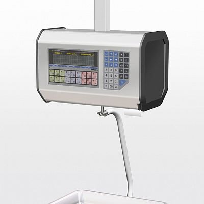 - Яркий двухсторонний двухстрочный дисплей (VFD, 2 строки по 22 символа) отображает массу нетто, цену, стоимость и наименование товара, а также информацию о выбранных режимах и состоянии весов.