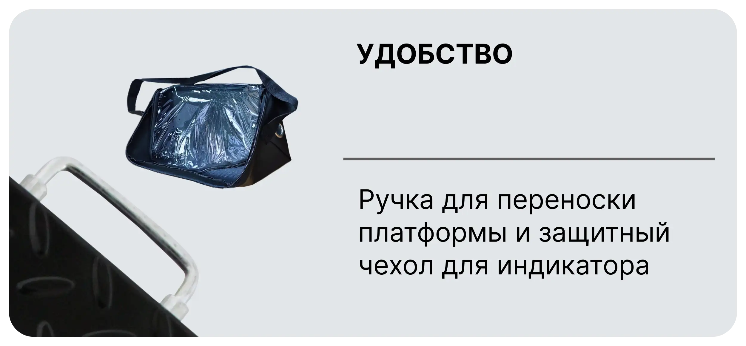 | Комплектация | взвешивающая платформа, индикатор, зарядное устройство (2 шт), чехол для индикатора, руководство по эксплуатации |