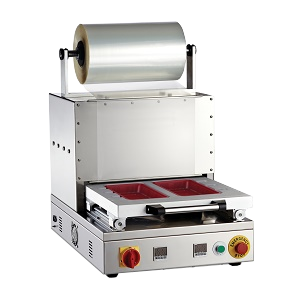 Трейсилер CT-M100 - производит автоматическую запайку лотков без удаления воздуха. Трейсилер производит обрезку упаковочной пленки по контуру, удаляя ее остатки и наматывая их на бобину.